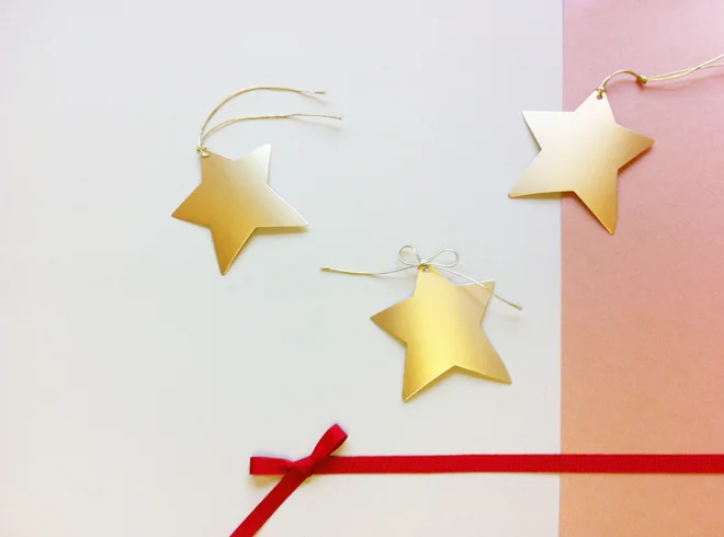 These gold stars are gift tags from a few Christmases ago. I love the sheen on them. And who knew that pink and red could feel so festive? I'm really digging the color combo, which was inspired by the packaging for these bobby pins from Kate Spade. Swoon.