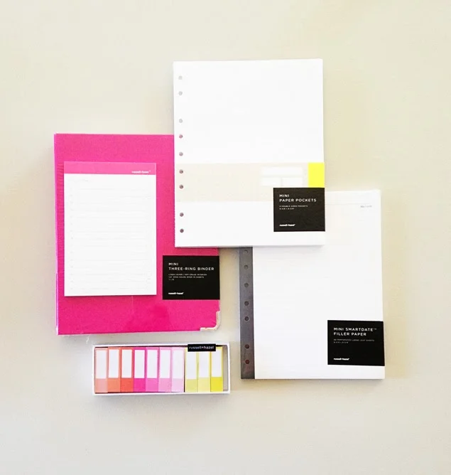 For my birthday, my sister got me a bunch of Russell + Hazel products. They're beautiful, modern, simple and functional. Unfortunately, there's no daily schedule page for the mini binder, which is what I have (pictured below). I'm considering designing one for myself, but we'll see.