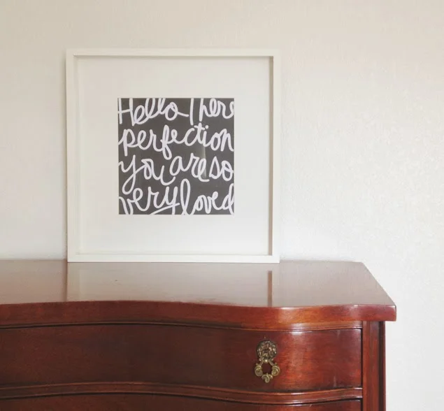 I went with the white-on-black handwritten design from the kit, taped it to the back of the mat, and that was it. No cutting, no paint, no glue, and the whole thing cost me under $1.00 since I re-used a frame.
